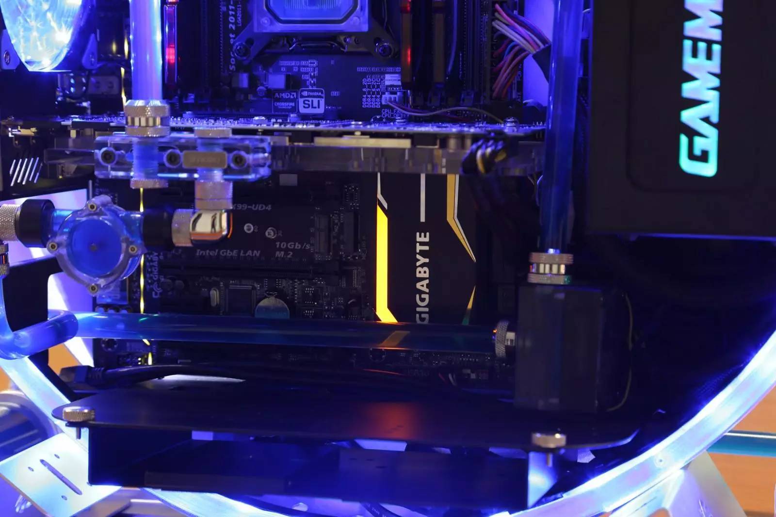 3、自带水冷箱,不仅帅气,实用效果也非常赞。