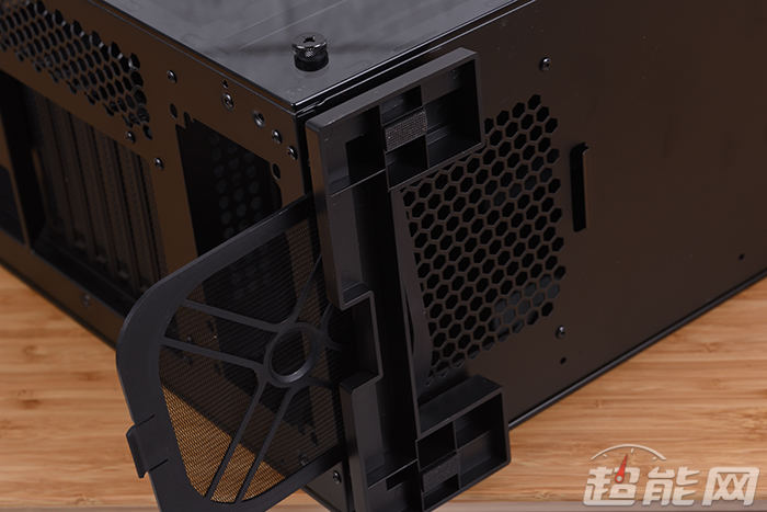 M909采用常见的分仓式结构,区域整体划分鲜明可见,ATX机箱的身材却可以容纳E-ATX服务器主板,自然在兼容性和扩展性方面绝对是令人满意的,散热冷却系统支持170mm高的CPU散热器,顶部支持最高360mm水冷排,前部支持安装2*120mm风扇,后部支持安装1*120mm风扇;对于水冷方案最佳的位置无疑是顶部,后部可以安装高风量风扇为主板元件辅助散热,而在前部安装风扇意义不是太大,进风口过于狭窄。而风冷方案就简单多了,高塔散热器+后排风扇的直通风道,可以把效率发挥到极致。