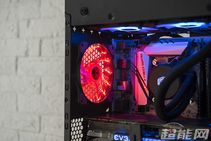 这次小编选择的是双塔风冷散热器Dark Rock PRO 3,因为其直通风道和散热器与后部风扇间距较短的缘故,即使是高端CPU产生的高热量也能很好地排出,显卡方面则选择EVGA GTX 1080 Ti FTW3 GAMING iCX,由此产生了一个兼容性问题,显卡承重支架的顶端与CPU散热器的鳍片部分产生了冲突无法安装。除此之外M909本身自带一排RGB灯条,所以本次只留下显卡Logo与主板部分点缀式灯光,整体电竞风格出来了但不会过于锋芒浮夸。