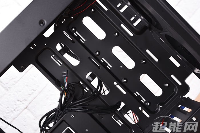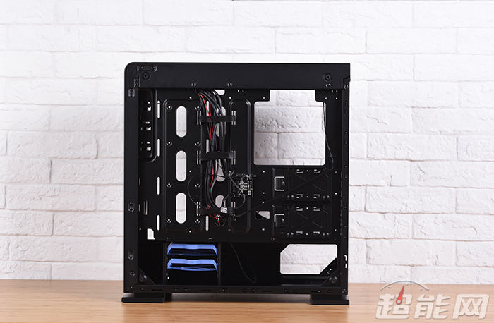 背面线材整理起来非常便利,装机的时候只需要把线材理顺一起用自带魔术贴捆绑即可,由于双侧钢化玻璃的缘故,因此走线是否美观一眼就能看出来。
